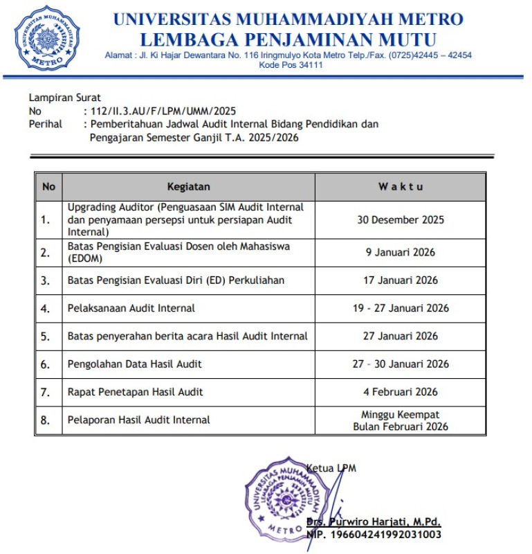1. Upgrading Auditor (Penguasaan SIM Audit Internal dan penyamaan persepsi untuk persiapan Audit Internal) - 30 Desember 2025