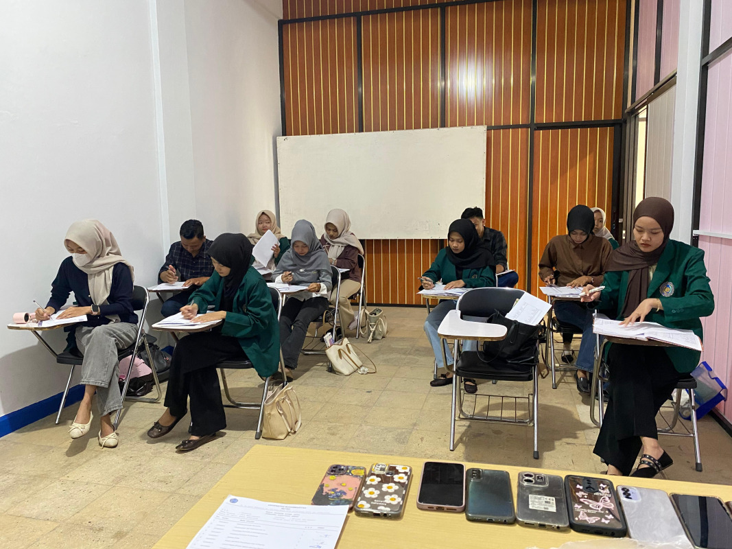 Pelaksanaan ujian dilakukan sesuai dengan jadwal yang telah ditetapkan dan diawasi langsung oleh dosen pengawas. Selama proses ujian berlangsung, mahasiswa mengikuti ujian dengan penuh disiplin serta mematuhi seluruh tata tertib yang berlaku. Suasana ujian terlihat kondusif sehingga mahasiswa dapat mengerjakan soal dengan fokus dan maksimal.