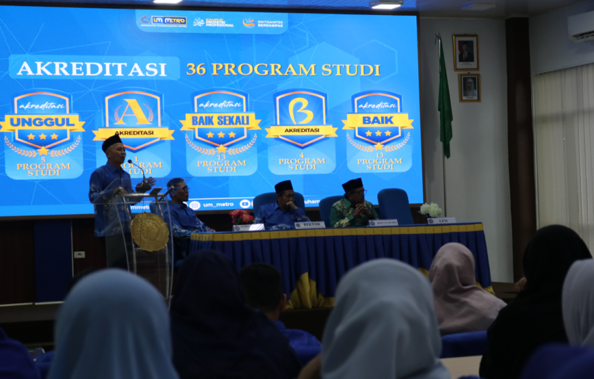 Dalam acara ini dipaparkan bahwa 5 program studi telah meraih predikat Unggul, 1 program studi berakreditasi A, 13 program studi berpredikat Baik Sekali, dan 13 program studi memperoleh predikat Baik. Capaian ini menjadi bukti nyata keseriusan UM Metro dalam menjaga kualitas akademik, tata kelola, dan layanan pendidikan.